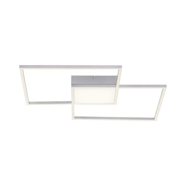 The square LED ceiling light Asmin convinces with its straight and puristic design. The steel-coloured luminaire is supplied with three fixed LED lamps and emits around 2,750 lumens. Numerous functions can be conveniently controlled via the remote control Thanks to the integrated CCT light management, the luminaire can be adjusted in the colour temperature from warm white (2,700 Kelvin) to daylight white (5,000 Kelvin). The luminous intensity can also be regulated at will. These functions are controlled by a supplied radio remote control. In addition, the ceiling light has a serial switch, so you can also operate the lamp via the normal light switch. Turn the lamp on and off for the first time, the complete ceiling lighting shines. When you turn the lamp on and off for the second time, only the outer edge of the lamp shines and the inner part lights up at the third turn on and off. The Memory function automatically saves your last settings. Durable and energy-efficient thanks to LED technology The ceiling light is energy-saving thanks to the LED technology used and convinces with low heat generation and a long service life.
