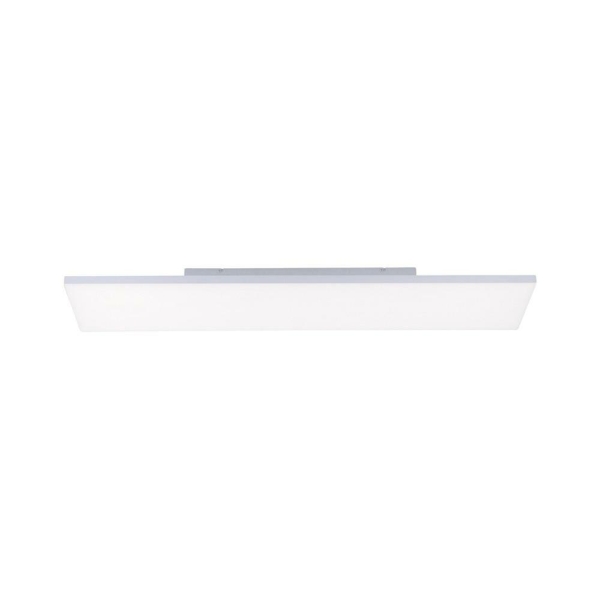 The frameless LED ceiling lamp impresses with its modern design. Thanks to the white plastic glass, the energy-saving lamp ensures pleasant, glare-free lighting. It comes with a fixed LED light source and a radio remote control. With the integrated CCT light management, you can flexibly adjust the color temperature of the light from warm white to daylight white to your needs and simulate the light colors of a daily routine. In addition, you have the possibility to dim the light intensity of the rectuangular LED lamp. You can use the Memory function to save your customized settings. All controls are carried out via the supplied remote control. Thanks to the LED technology used, the white ceiling lamp is energy-saving and convinces with low heat generation and a long service life.