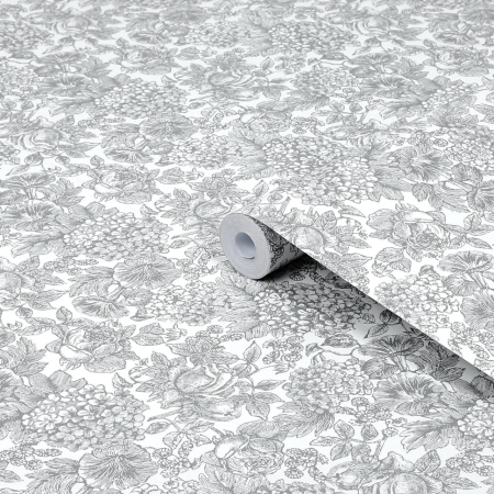 Laura Ashley Slate Grey Tapestry Floral Wallpaper
