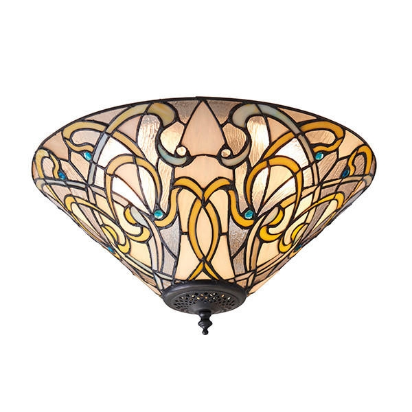 Dauphine 2 Light Black Medium Tiffany Flush Ceiling Light