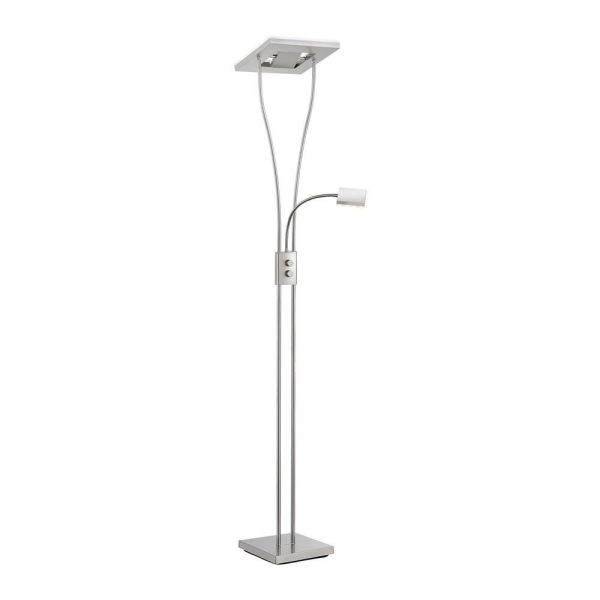 An EyeCatcher illuminates your home: The steel-coloured LED floor lamp fascinates with its modern, futuristic design. A real highlight is the angular, double lamp head. While the outer light source in the floodplain is not movable, you can align the inner part as desired and thus place the light incidence individually up or down. In addition, you have the possibility to adjust the light intensity variably via a rotary dimmer. Thanks to the satin-plated acrylic glass, the ceiling floodlight ensures pleasant, glare-free lighting. Furthermore, the floor lamp has a flexible reading arm, which you can customize according to your personal needs. It is supplied including three fixed LED lamps. The warm white light colour creates a cosy atmosphere in your four walls. Let your living area shine in a wonderful light by the modern LED floor lamp!