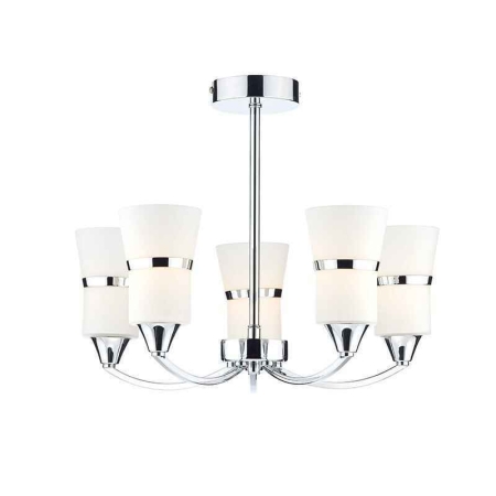 2. Dublin 5 Light Polished Chrome and White Glass Semi Flush Ceiling Light