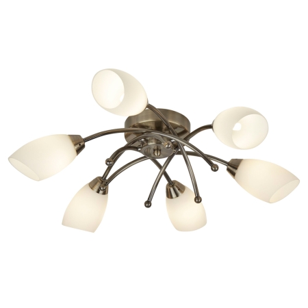15. Opera 6 Light Anttique Brass with Opal Glass Flush Ceiling Light
