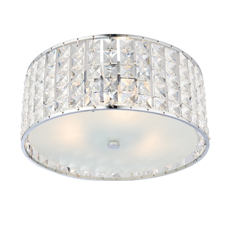 14. Chryla 3 Light Chrome with Clear Faceted Glass Flush Ceiling Light
