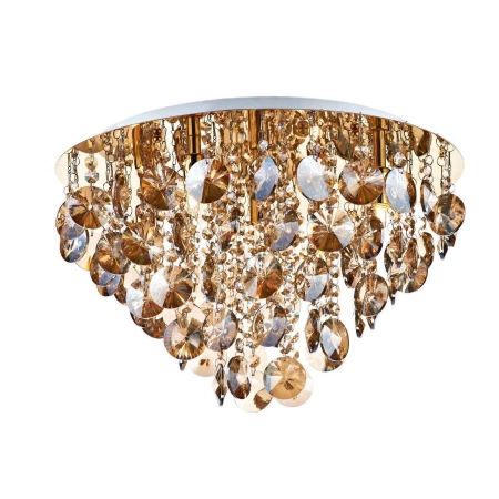 30. Jester 5 Light Antique Gold with Amber Crystal Droppers Flush Ceiling Light