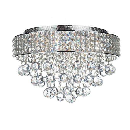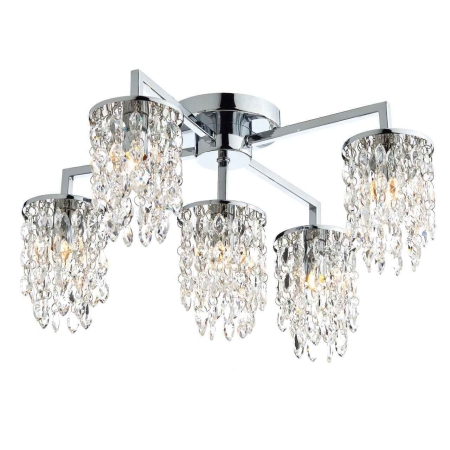 31. Jester 5 Light Polished Chrome with Clear Crystal Droppers Flush Ceiling Light