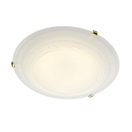2. Damask 1 Light 30CM Brass Trim with White Alabaster Glass Shade Flush Ceiling Light
