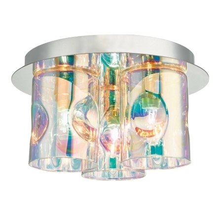 4. Inter 3 Light Polished Chrome and Iridised Glass Flush Ceiling Light
