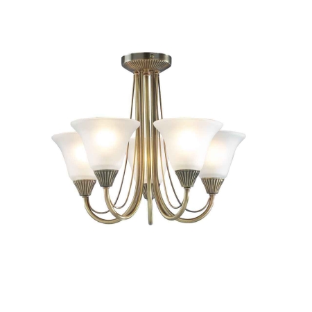 5. Boston 5 Light Antique Brass with Glass Semi Flush Pendant Light