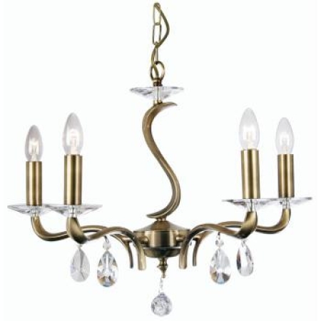 33. Cobra 5 Light Antique Brass with Crystal  45cm Chandelier Pendant Light