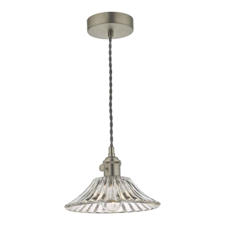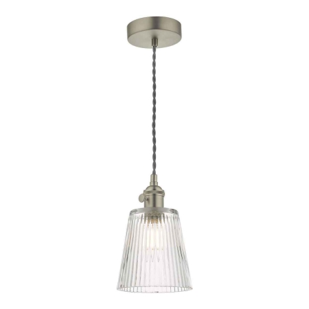 26. Hadano Antique Chrome with Ribbed Glass Shade Pendant Light