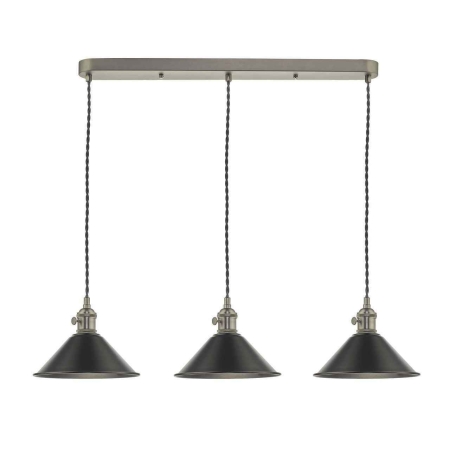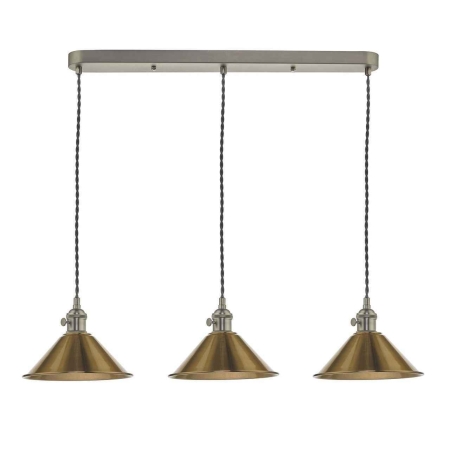 24. Hadano 3 Light Brass with Antique Pewter Shades Lighting Suspension