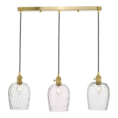 25. Hadano 3 Light Brass with Dimpled Glass Shades Lighting Suspension