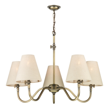 17. Vanessa 5 Light Antiue Brass and Glass Pendant