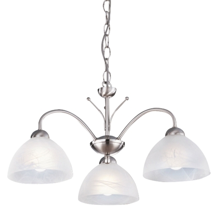 17. Milanese 3 Light Satin Silver with Alabaster Glass Pendant Light