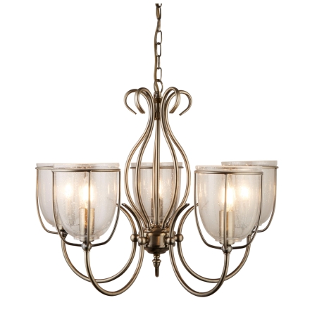 9. Silhouette 5 Light Antique Brass with Seeded Glass Pendant Light