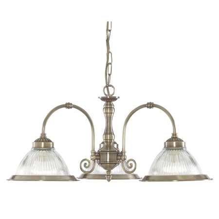 15. American Diner 3 Light Antique Brass with Clear Glass Pendant Light
