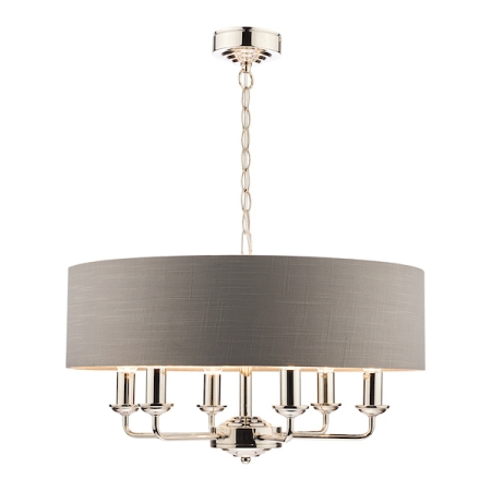 33. Sorrento 6 Light Polished Nickel Armed Fitting with Charcoal Shade Ceiling Light