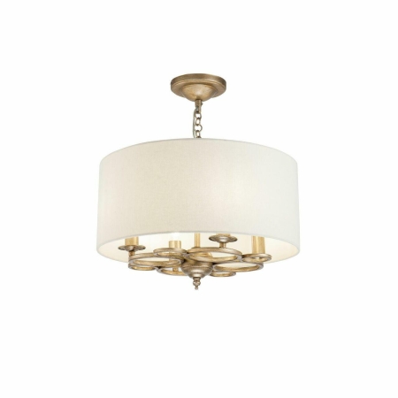 25. Anna 5 Light Antique Gold with Cream Fabric Shade Pendant Light