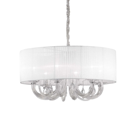 12. Swan SP6 6 Light Chrome with White Shaded Pendant Light