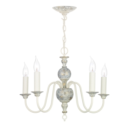 26. Flemish 5 Light Distressed Powder Grey and Gold Pendant Light