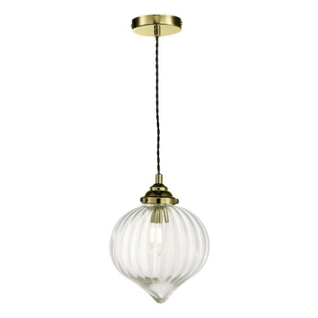 34. Mya Antique Brass and Ribbed Glass Pndant Light