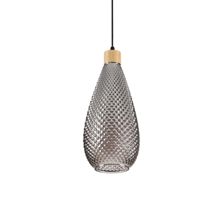 26. Bergen SP1 Black with Wood and Smoke Glass 24cm Pendant Light