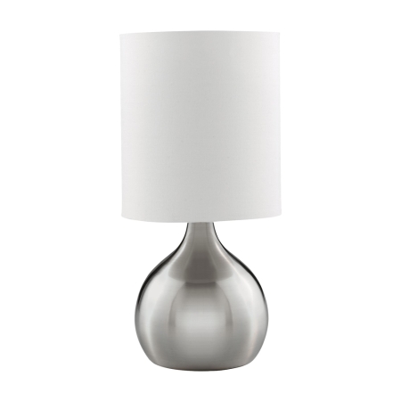 36. Touch Satin Silver with White Drum Shade Table Lamp