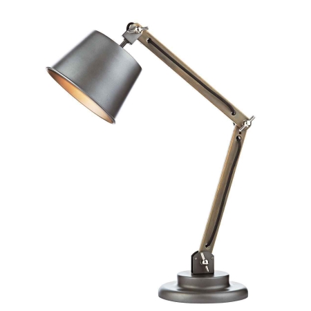 4. Arken Raw Wood Adjustable with Grey Industrial Metal Shade Table Lamp