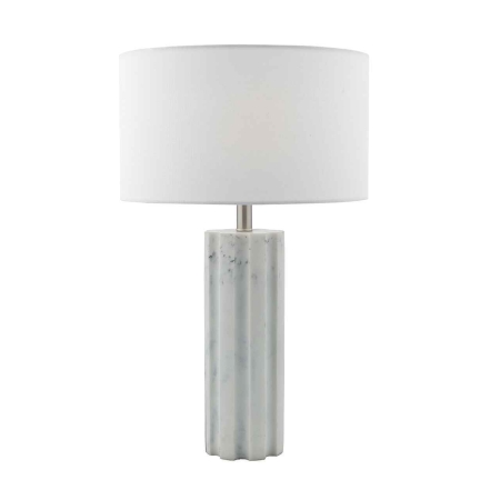 20. Erebus Stone and Polished Chrome with White Linen Shade Table Lamp