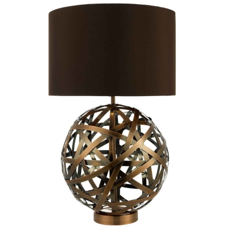 6. Voyage Woven Antique Copper Ball with Faux Silk Brown Shade Table Lamp