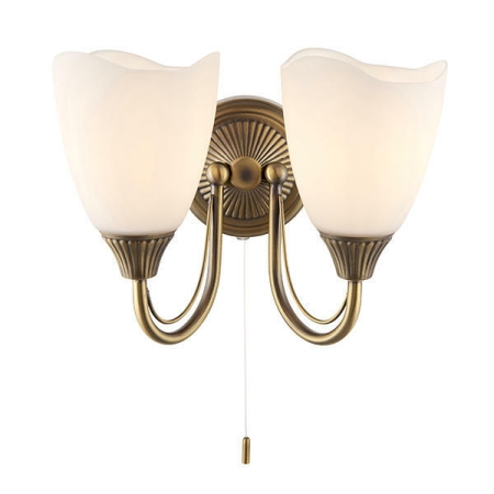 27. Haughton 2 Light Antique Brass with Opal Glass Wall Light