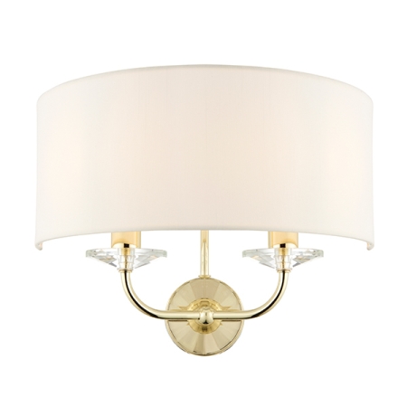 32. Nixon 2 Light Polished Brass with Vintage White Shade Wall Light