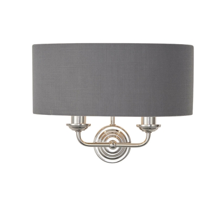 7. Highclere 2 Light Bright Nickel with Charcoal Fabric Shade Wall Light