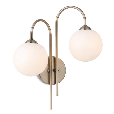 36. Lyndon 2 Light Antique Brass with White Opal Glass Wall Light