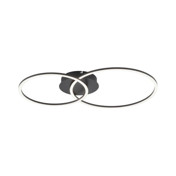 The LED ceiling lamp in the trend colour black fascinates with its modern, flat design. The simple light rings make it a pretty eye-catcher in your living room. The upper light ring can be swivelled, only the lower ring is firmly installed. With its warm white light colour, the modern ceiling lamp creates a cosy feel-good ambience in your four walls. It is supplied including two fixed LED lamps. In addition, the energy-saving ceiling lighting is equipped with Simply Dim technology. This step tuning makes it possible for you to dim your luminaire in its light brightness via an existing light switch, whether tilting, pulling, string or wall switches. The Simply Dim-Driver controls the brightness via the switching pulse and so the light intensity of the lamp can be infinitely adjusted from 100% down to 10%. If the lamp is switched on again less than 3 seconds after switching off, the dimming process starts. Does it have the brightest (100%) or darkest value (10%) , it lingers on this setting for about 2 seconds to start the dimming process again. If the luminaire shines in the desired brightness during a dimming process, the light intensity can be saved via the memory function by switching off the luminaire. If you turn the lamp back on, the lamp will shine in the stored brightness and this setting will be retained. Thanks to the LED technology used, the modern ceiling lighting is energy-saving and convinces with a low heat generation and a long service life.
