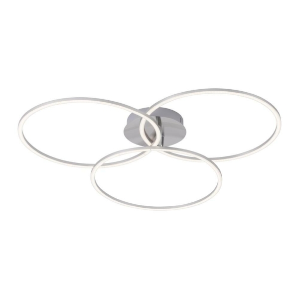 The steel-coloured LED ceiling lamp impresses with its modern, simple design and its three luminous rings. While the lower ring is fixed, you can swivel the middle and upper ring as desired. With its warm white light colour, the luminaire ensures a pleasant, cosy ambience in your living room. It is supplied including three fixed LED lamps. In addition, the ceiling lamp is equipped with Simply Dim technology. This step tuning makes it possible for you to dim your luminaire in its light brightness via an existing light switch, whether tilting, pulling, string or wall switches. The Simply Dim-Driver controls the brightness via the switching pulse and so the light intensity of the lamp can be infinitely adjusted from 100% down to 10%. If the lamp is switched on again less than 3 seconds after switching off, the dimming process starts. Does it have the brightest (100%) or darkest value (10%) , it lingers on this setting for about 2 seconds to start the dimming process again. If the luminaire shines in the desired brightness during a dimming process, the light intensity can be saved via the memory function by switching off the luminaire. If you turn the lamp back on, the lamp will shine in the stored brightness and this setting will be retained. Thanks to the LED technology used, the modern ceiling lighting is energy-saving and convinces with a low heat generation and a long service life.