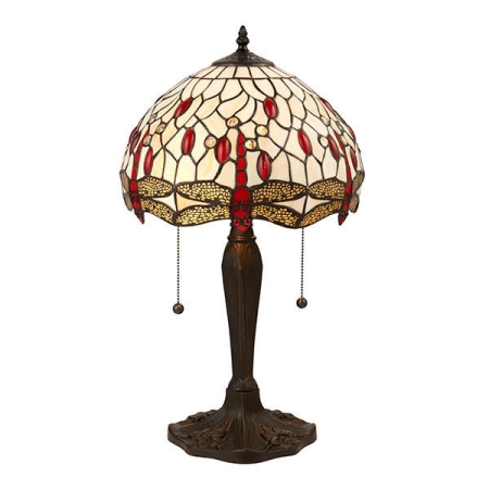 25. Dragonfly 2 Light Dark Bronze with Beige Medium Tiffany Table Lamp