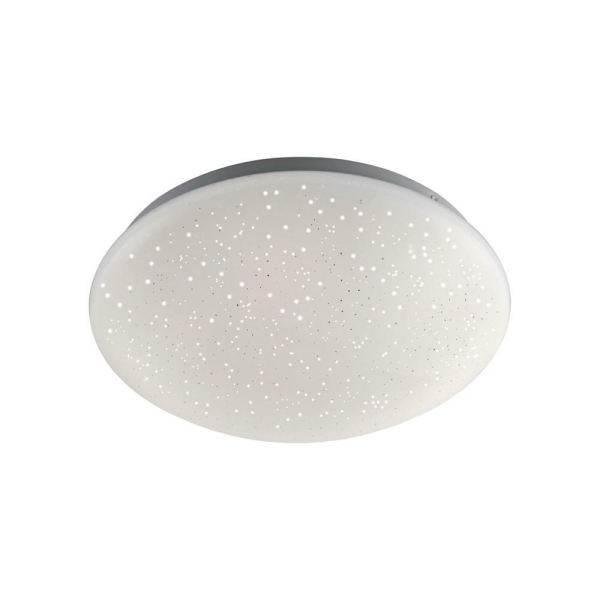 A unique eye-catcher illuminates your room: The round LED ceiling light impresses with its fascinating starry sky look. Many small translucent dots in the plastic umbrella create the impression of a sparkling sea of stars. With its warm white light colour, the ceiling lamp also provides a cosy feel-good atmosphere. It comes with a fixed LED light source and an infrared remote control. With the included remote control, you can control the integrated RGBW color change and let the luminaire shine in a warm white light or, for example, in a red, green or blue light. Get the modern light source into your home and let yourself be enchanted by the starry sky look.