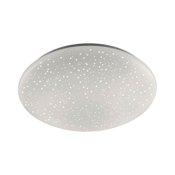 An impressive light source illuminates your living area: The round ceiling lamp convinces with its fascinating starry sky look. Many small translucent dots in the lampshade create the impression of a sparkling sea of stars. The luminaire is supplied with a fixed LED light bulb. With a warm white colour temperature of the light, the pretty light source provides a cosy feel-good atmosphere in your four walls. In addition, you have the possibility to adjust the light color variably via the included infrared remote control by means of the integrated RGBW color change. Let yourself be enchanted by the fascinating starry sky and get the white LED ceiling light into your home.